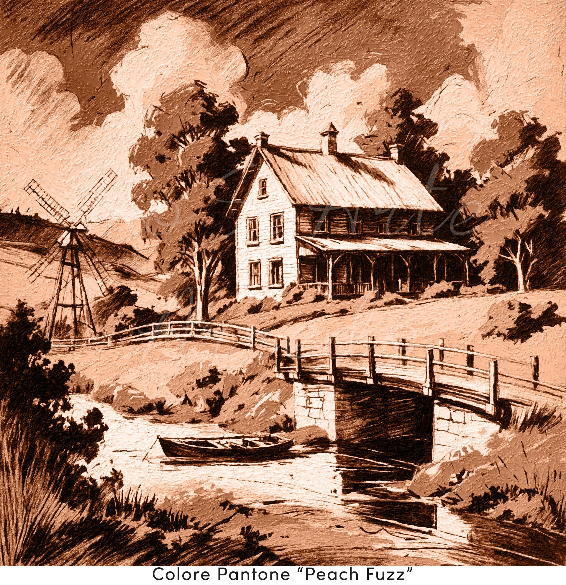 Ai piedi della collina, il vecchio mulino scruta silenzioso il corso del fiume. La casa, con il suo portico ampio, accoglie chi cerca riparo dal sole estivo o dal vento dell’inverno. Tra il lento scorrere dell’acqua e il fruscio delle pale al vento, questo luogo custodisce la memoria di un tempo in cui la vita seguiva i ritmi della terra.