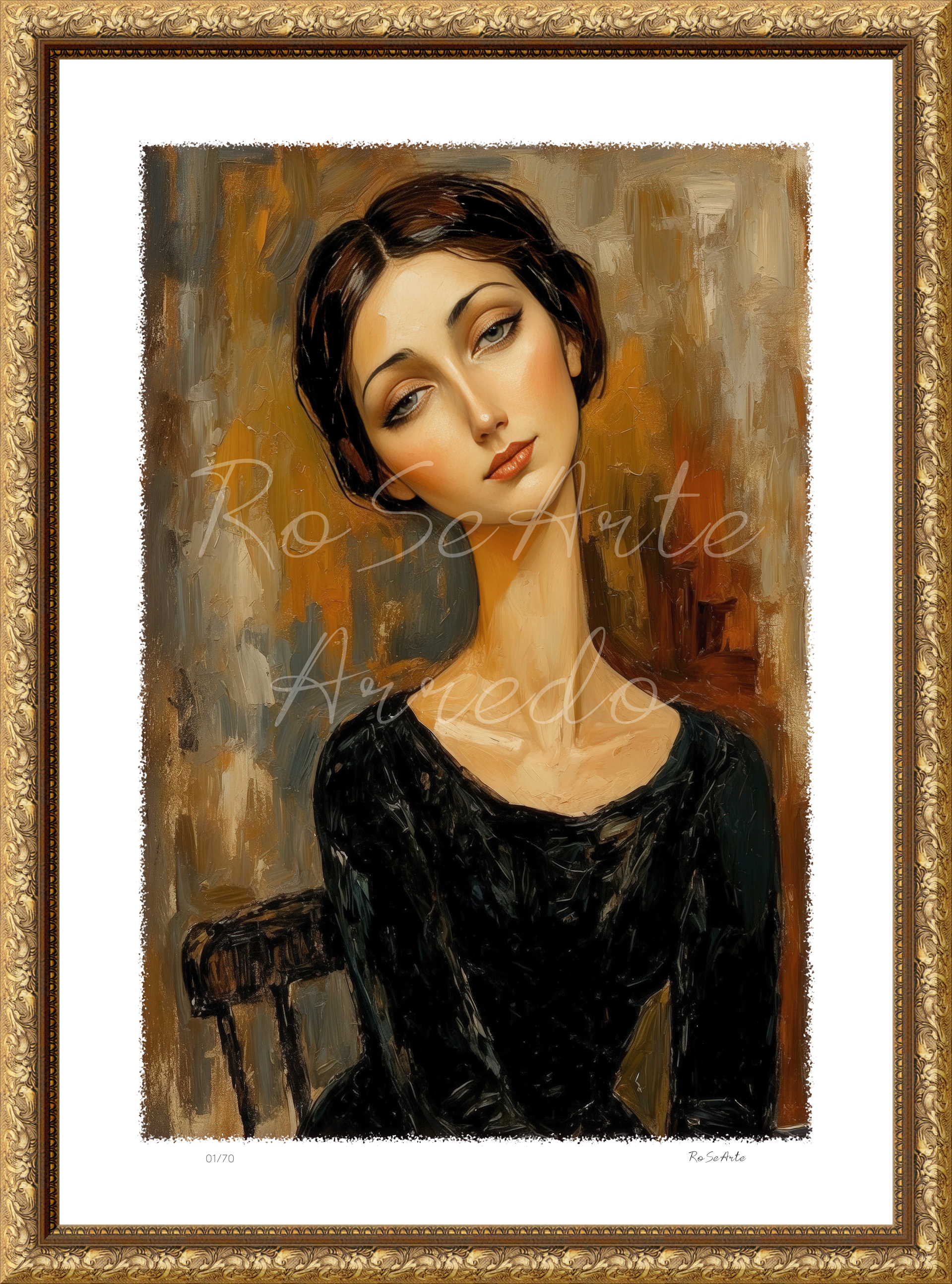 Warm tones surround her like a lived-in room,